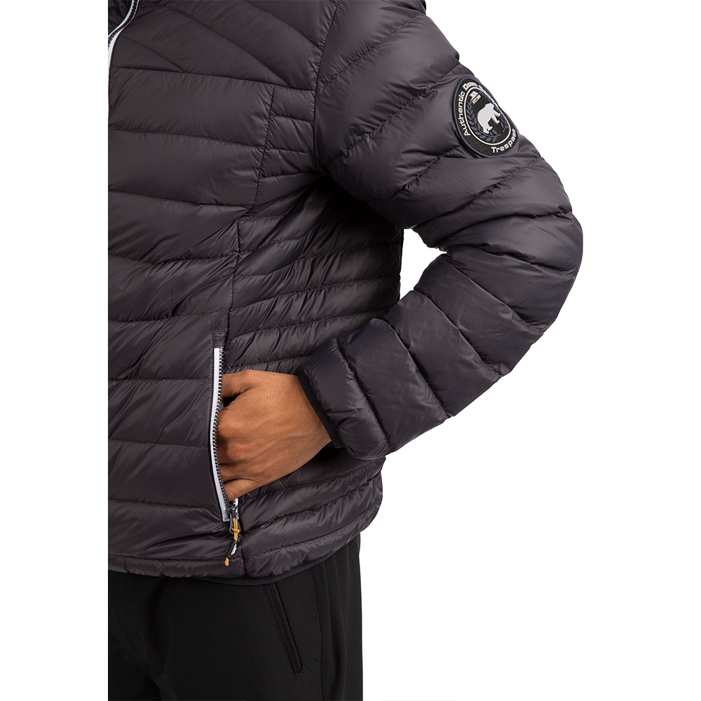 Trespass Whitman II er en ultralet herre dunjakke med 650 fill power, fast hætte og praktisk pakfunktion. En god løsning til kølige dage som yderjakke – eller som isolerende lag under en skaljakke.