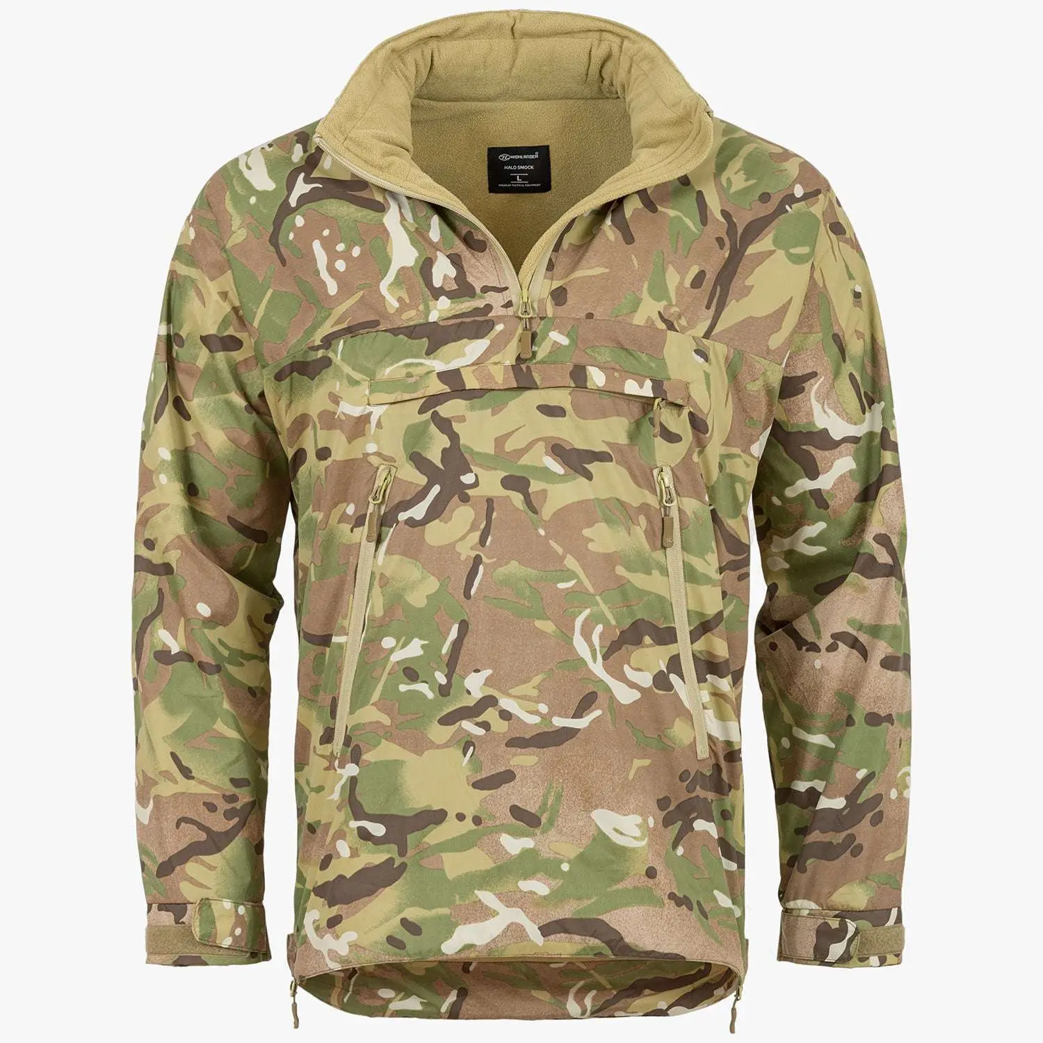 Highlander Halo Smock er en let og funktionel herre vandrejakke, udviklet til aktiv brug i køligt og ustadigt vejr. Jakken er fremstillet i slidstærkt 210T nylon ripstop og foret med microfleece, som giver en god balance mellem lav vægt, varme og bevægelsesfrihed på vandreture.