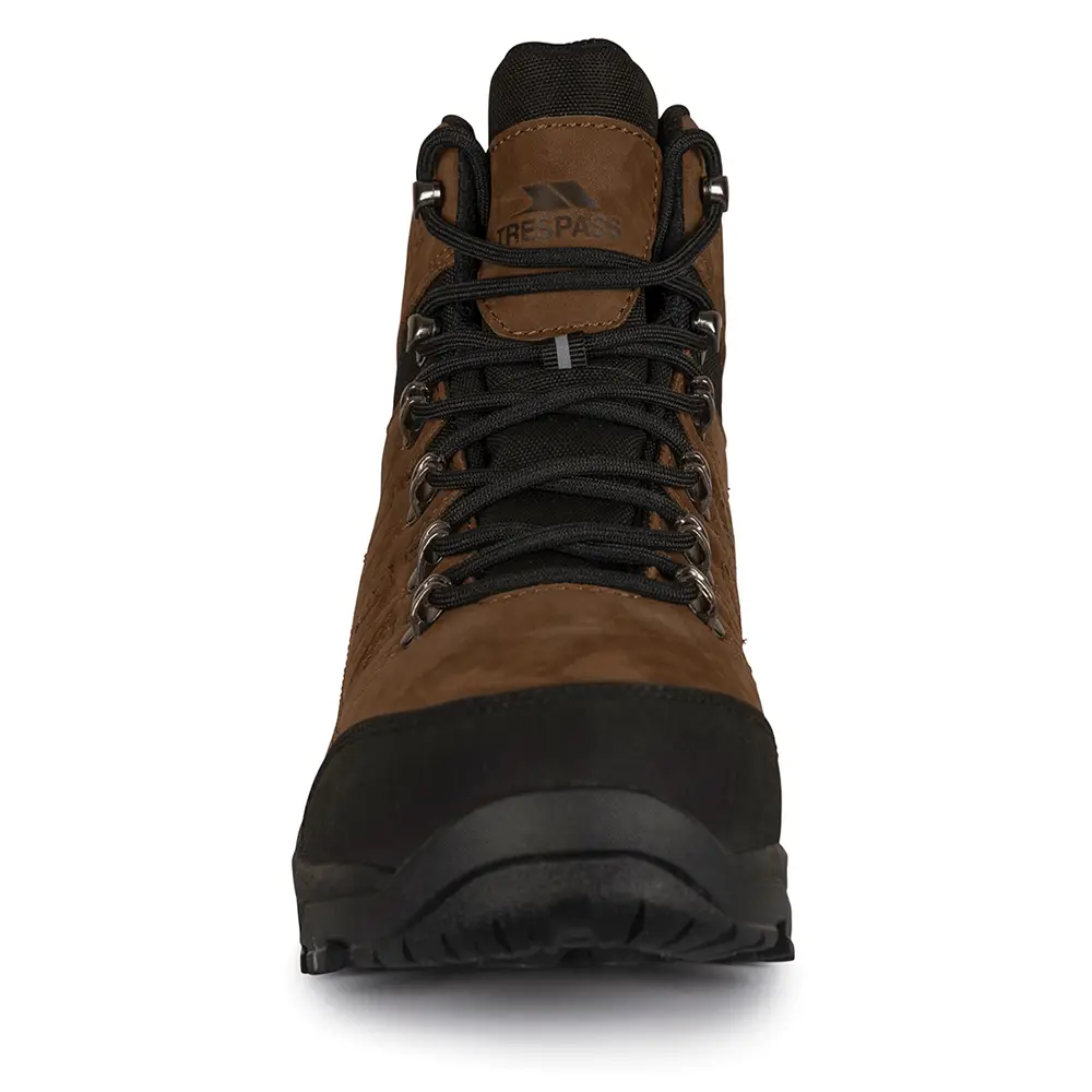 Herre vandrestøvler Trespass Corrie i brun med læderoverdel, Hydroguard-membran og Vibram-sål. Stabil og komfortabel støvle til vandring.