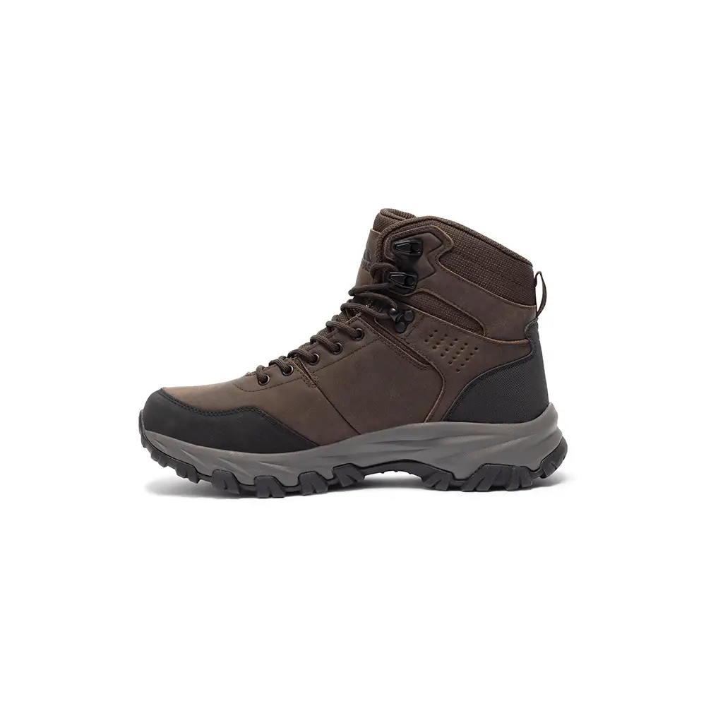 Trespass Stride er solide herre vandrestøvler designet til vandring i varieret terræn. Støvlen har en slidstærk læderoverdel, vandtæt membran og en robust ydersål, der giver stabilitet og godt greb på både tørre og våde stier. Den beskyttende tåkappe og komfortable pasform gør modellen velegnet til både dagsture og længere vandringer i skiftende vejrforhold.
