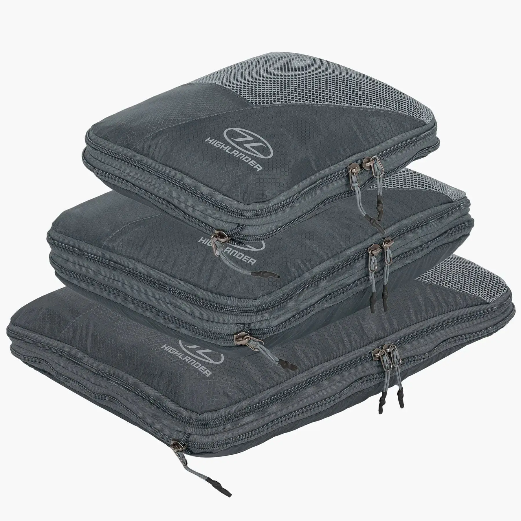 Highlander Compakta er et sæt pakkeposer til organisering af tøj og udstyr under rejser og backpacking. Du får tre størrelser samt en separat vaskepose, så du nemt kan holde orden og adskille rent og brugt tøj i rygsæk, rejsetaske eller kuffert.