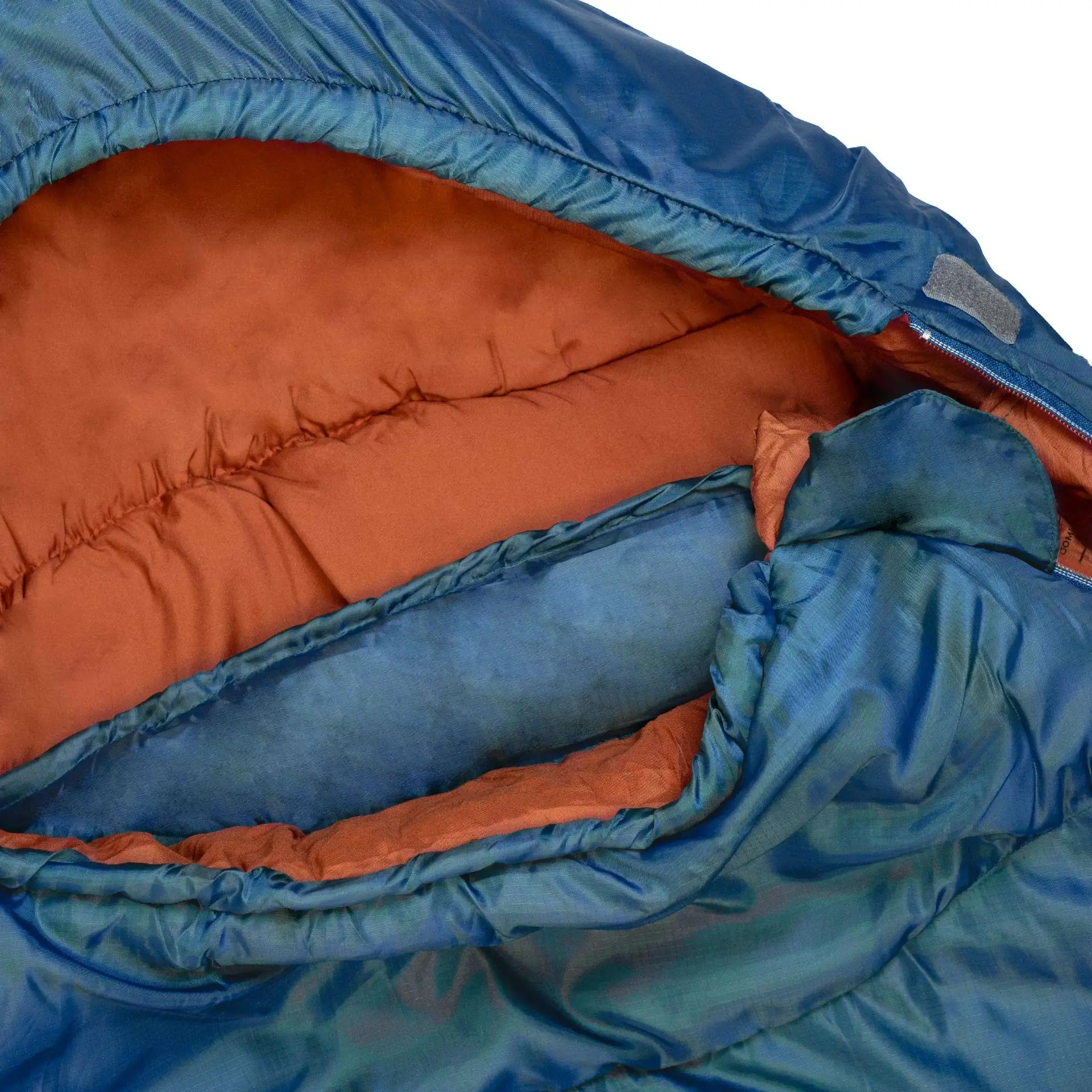 Sovepose Highlander Rayet 250 er en varm og komfortabel mumiemodel, der kombinerer syntetisk isolering med et slidstærkt, vandafvisende ydermateriale. Den er designet til at holde dig varm og tør på kolde nætter i teltet – perfekt til camping, spejderture og friluftsliv i 2–3 sæsoner.
